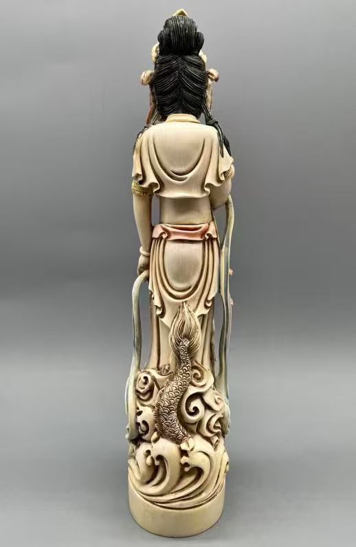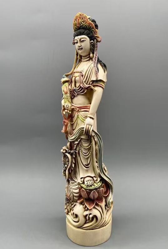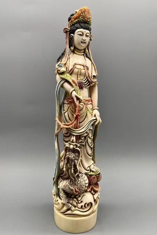 Hand-Carved Mammoth Ivory Dragon Guanyin Statue — Exquisite Artisan Masterpiece