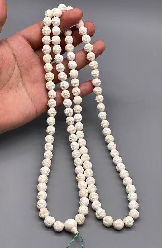 Mammoth Ivory Lotus Bead Necklace — Elegant 108 Beads Design