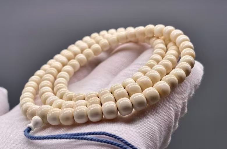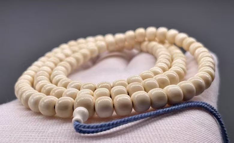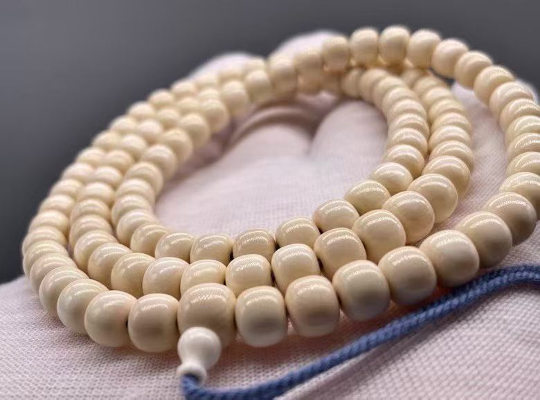 Mammoth Ivory 18 Arhats Bead Necklace — Exquisite 108 Hand-Carved Beads