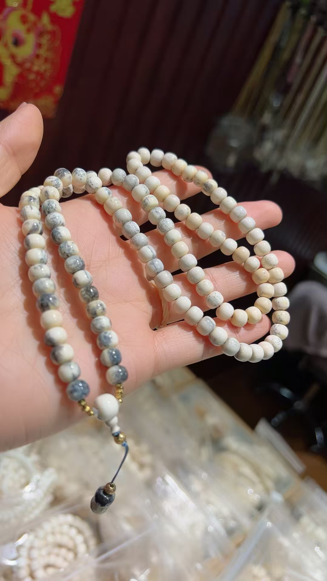 This rare mammoth ivory multi-strand bracelet/necklace features naturally formed ink-blue gradient tones — not dyed, but created by nature over time. Each bead (approx. 7×6 mm) is smooth, warm in texture, and beautifully balanced. This is the last available piece, making it a truly special collectible for those who appreciate unique natural beauty.