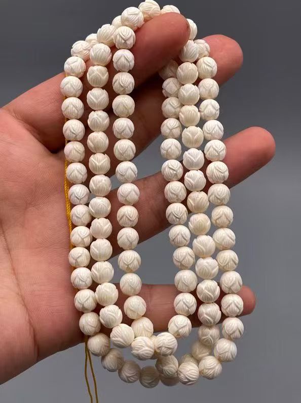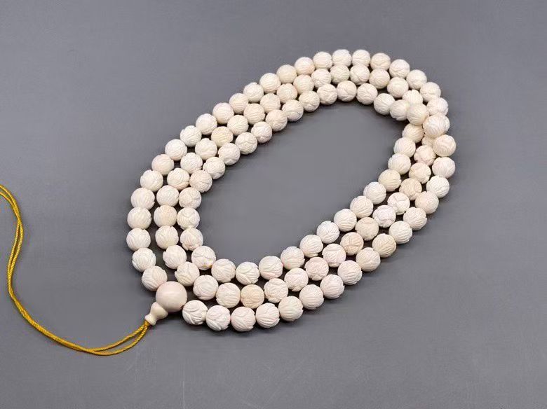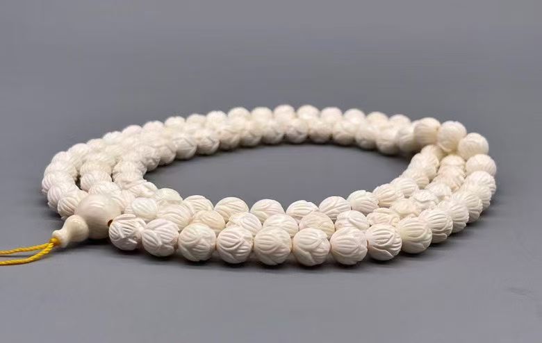 Mammoth Ivory Lotus Bead Necklace — Elegant 108 Beads Design