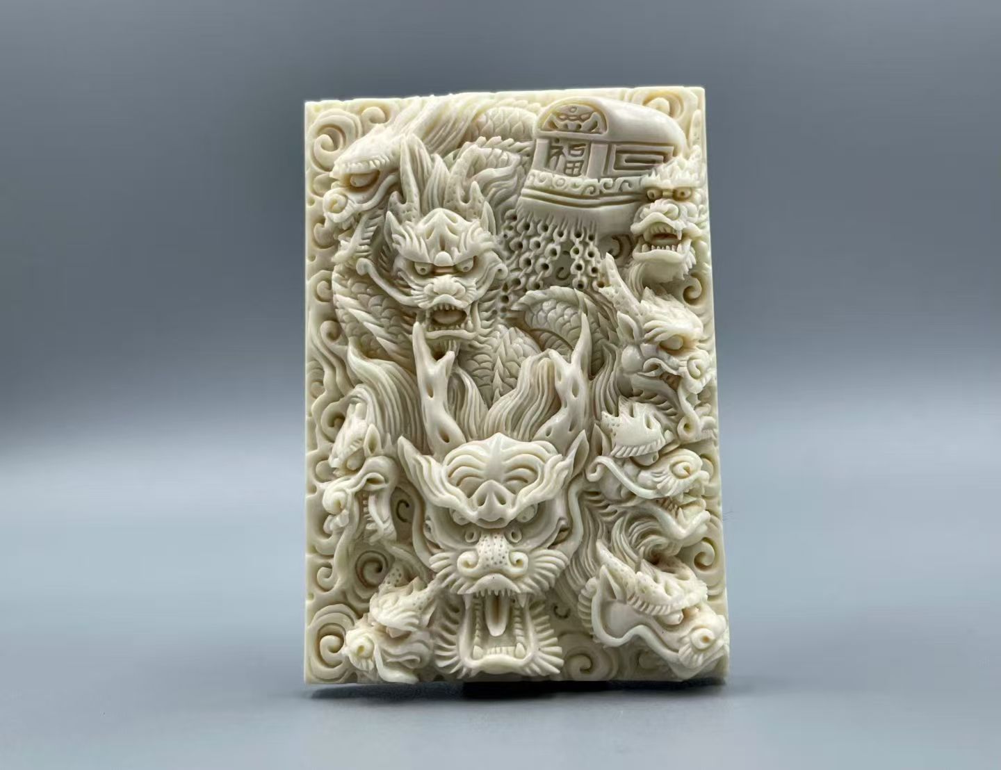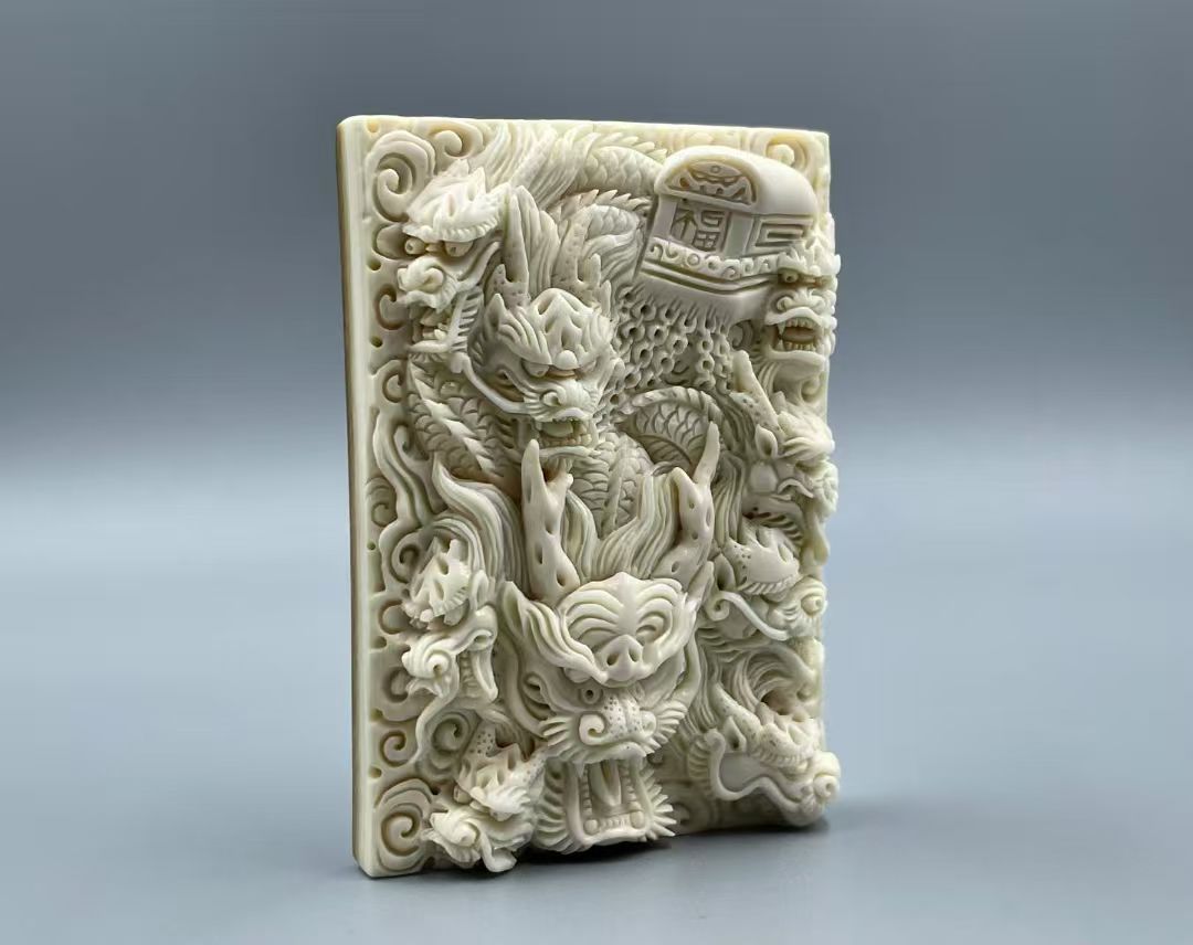 Master-Carved Nine-Dragon Mammoth Ivory Pendant for Strength & Prestige